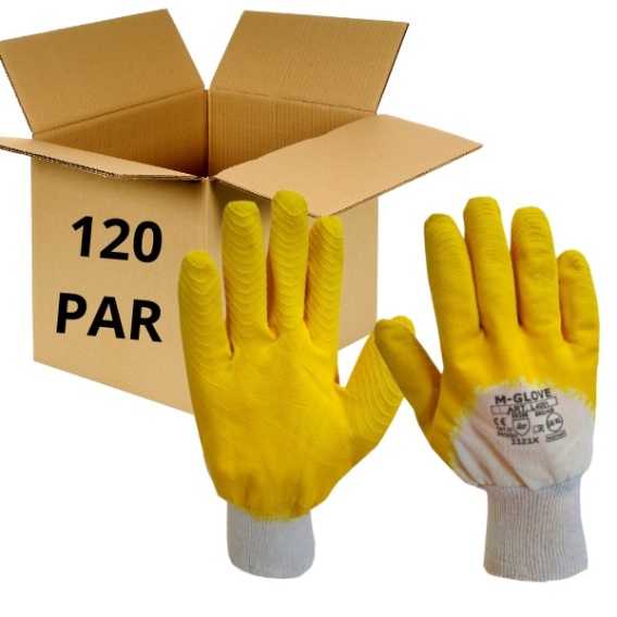 Wysokiej jakości rękawice ochronne wykonane z trwałej dzianiny, powlekanej od strony chwytnej szorstkowaną gumą w kolorze żółtym. Powierzchnia chwytna o chropowatej strukturze znacząco zwiększa przyczepność, zapewniając pewny uchwyt nawet w środowisku wilgotnym lub zaolejonym. Rękawice zakończone są elastycznym ściągaczem, który stabilnie utrzymuje je na dłoni i zapobiega dostawaniu się zanieczyszczeń do wnętrza.